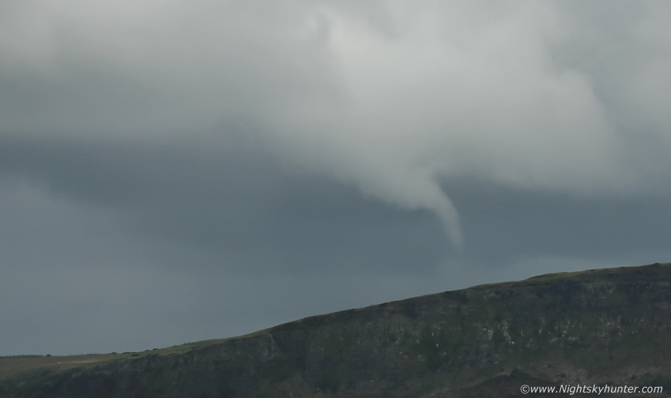 The funnel was constantly evolving while changing shape by the second, at this moment in time I assumed that many people were watching it and was fully expecting social media to be full of images of this transient visitor over a famous area of the coastline, anyone to the N side of the mountain would have had a terrific view of it, I would almost go so far to say that there were likely cars on the road to Gortmore who may passed near it and perhaps didn't see it rotating across their zenith.
